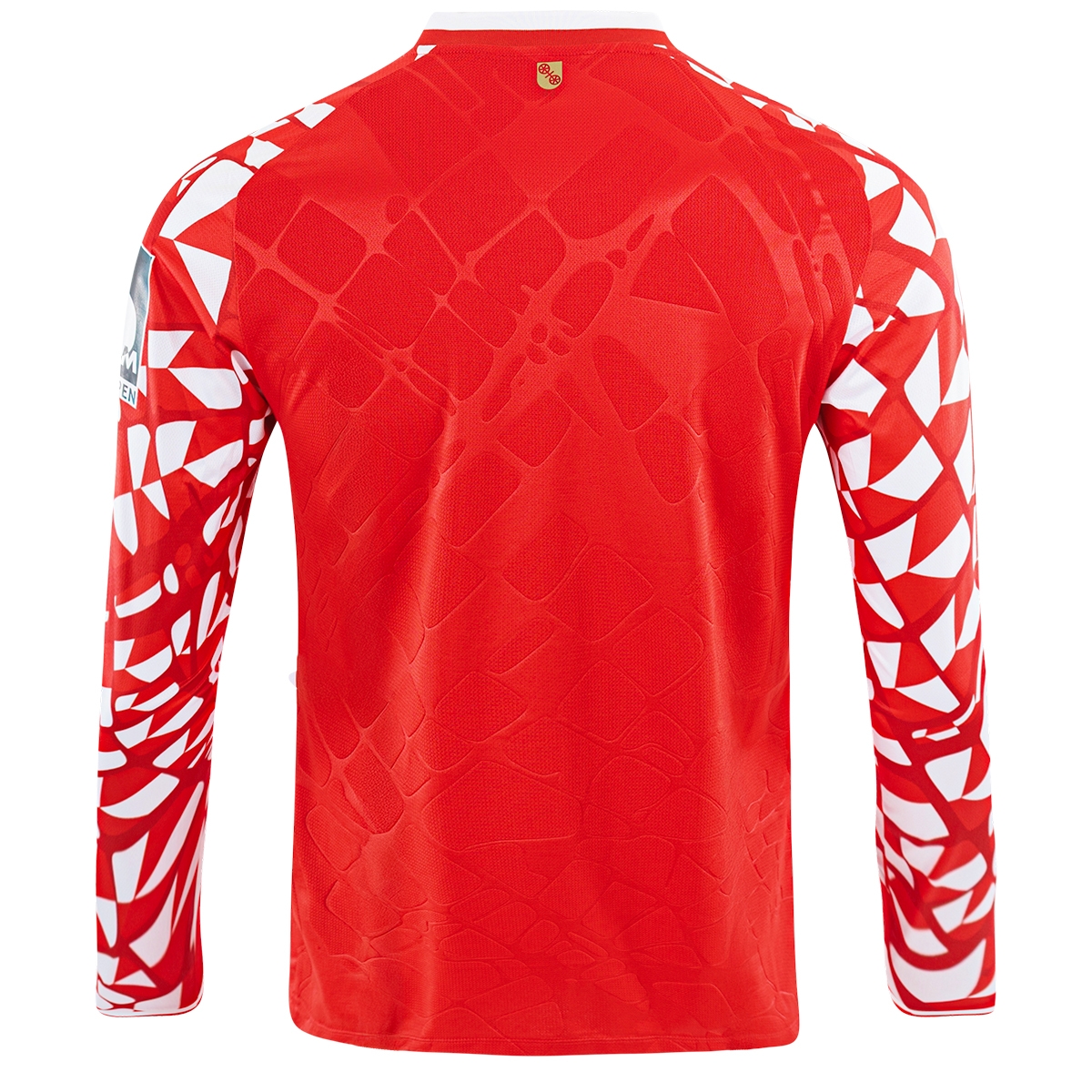 Das JAKO Mainz 05 Heimtrikot für die Saison 2025/26 in langarm erscheint traditionsgemäß in den Vereinsfarben Rot und Weiß. Die charakteristischen karierten Muster zieren wie gewohnt die Ärmel und Schultern, sind in ihrer Gestaltung jedoch an ein besonderes Highlight des Trikots angepasst: den eingeprägten Stadtplan von Mainz, der sich über Vorder- und Rückseite erstreckt. Auf der Brust sind das Logo des Hauptsponsors Kömmerling in Weiß sowie das JAKO-Logo und das Vereinswappen von Mainz 05 prominent platziert. Wovon das JAKO und das Mainz 05 Logo in Gold umrandet sind, passend zu den goldenen JAKO dots auf den Schultern.