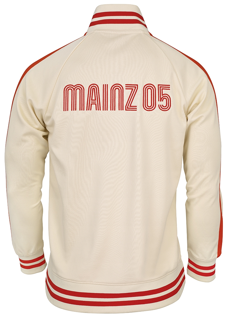 Stylische Beige-Jacke mit markantem „05“-Logo und roten Streifen – der perfekte Retro-Look für echte Mainz 05 Fans. Ob im Stadion oder Alltag, diese Jacke vereint Sportlichkeit und Tradition auf lässige Weise.