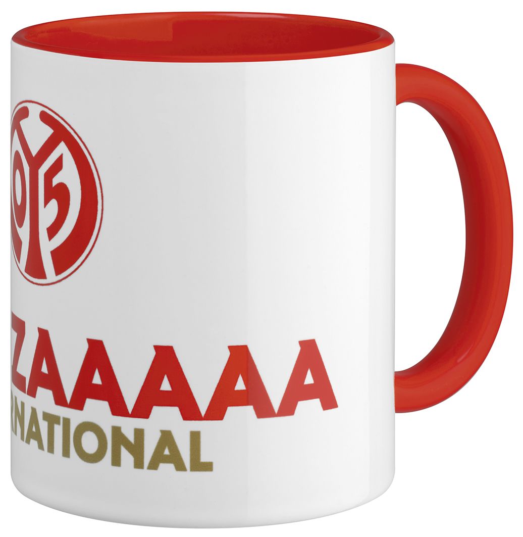 MAINZAAAAA INTERNATIONAL Die weiße Keramiktasse mit roten Henkeln und rotem Innenteil ist ideal für Kaffee, Tee oder andere Getränke. Ein Must-have für echte Mainz-Fans – perfekt für Büro, Zuhause oder als Geschenk.