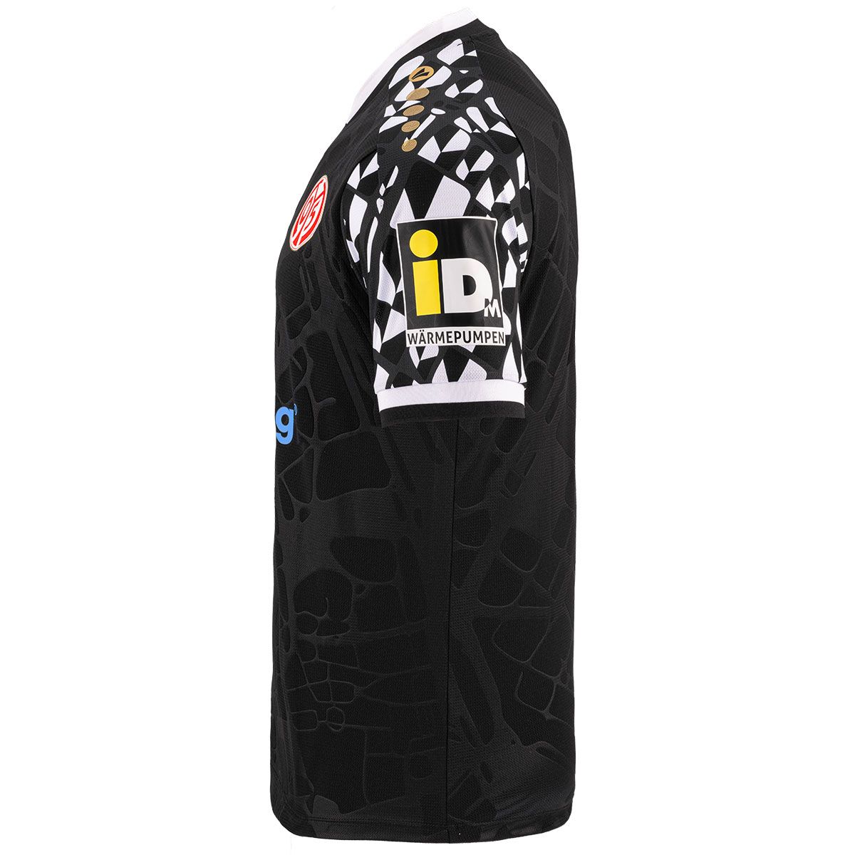 Das JAKO Mainz 05 Torwarttrikot Kinder 25/26 in Schwarz! Das Trikot begeistert durch ein einzigartiges Detail: Der eingeprägte Stadtplan von Mainz erstreckt sich markant über Vorder- und Rückseite und verleiht dem Shirt einen unverwechselbaren Look, inspiriert vom Heimtrikot-Highlight. Auf der Brust befinden sich das Vereinswappen von Mainz 05, das JAKO-Logo sowie das Hauptsponsor-Logo von Kömmerling in Weiß – prominent und stilvoll platziert.