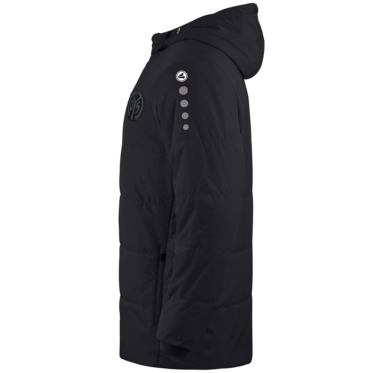Die schwarze Winterjacke der Teamline 25/26 kombiniert sportliche Funktionalität mit dezenter Fanoptik. Dank ihrer warmen Wattierung, dem hohen Kragen und der gefütterten Kapuze bist du bestens gegen Kälte und Wind geschützt. Ob beim Training, im Stadion oder unterwegs – mit dieser Jacke zeigst du auch im Winter Flagge für Mainz 05.